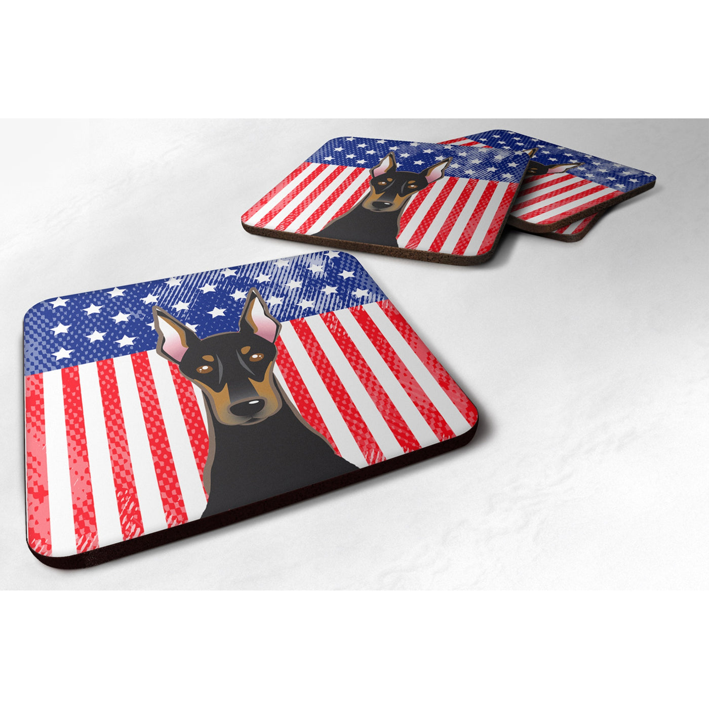 'Caroline's Treasures BB2175FC American Flag And Doberman Foam Coaster (Set of 4) 3.5'''' Multicolor''