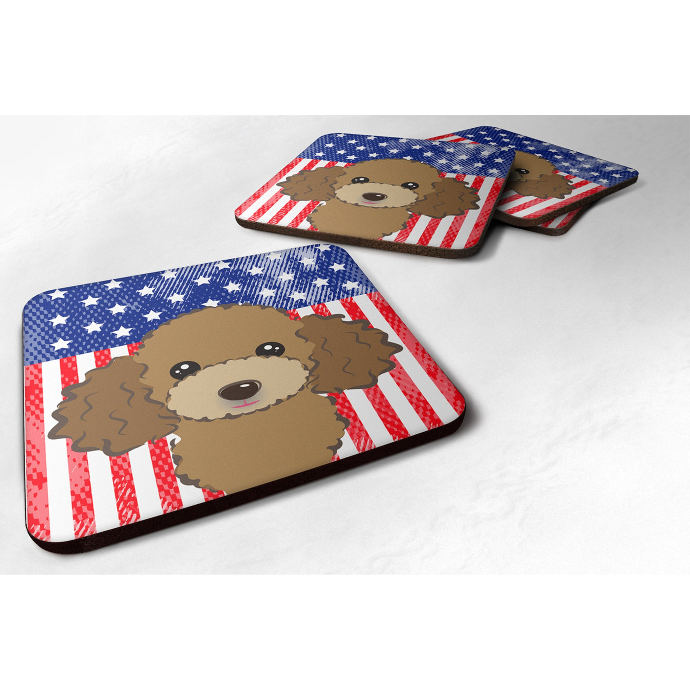 'Caroline's Treasures BB2186FC American Flag And Chocolate Brown Poodle Foam Coaster (Set of 4) 3.5'''' Multicolor''