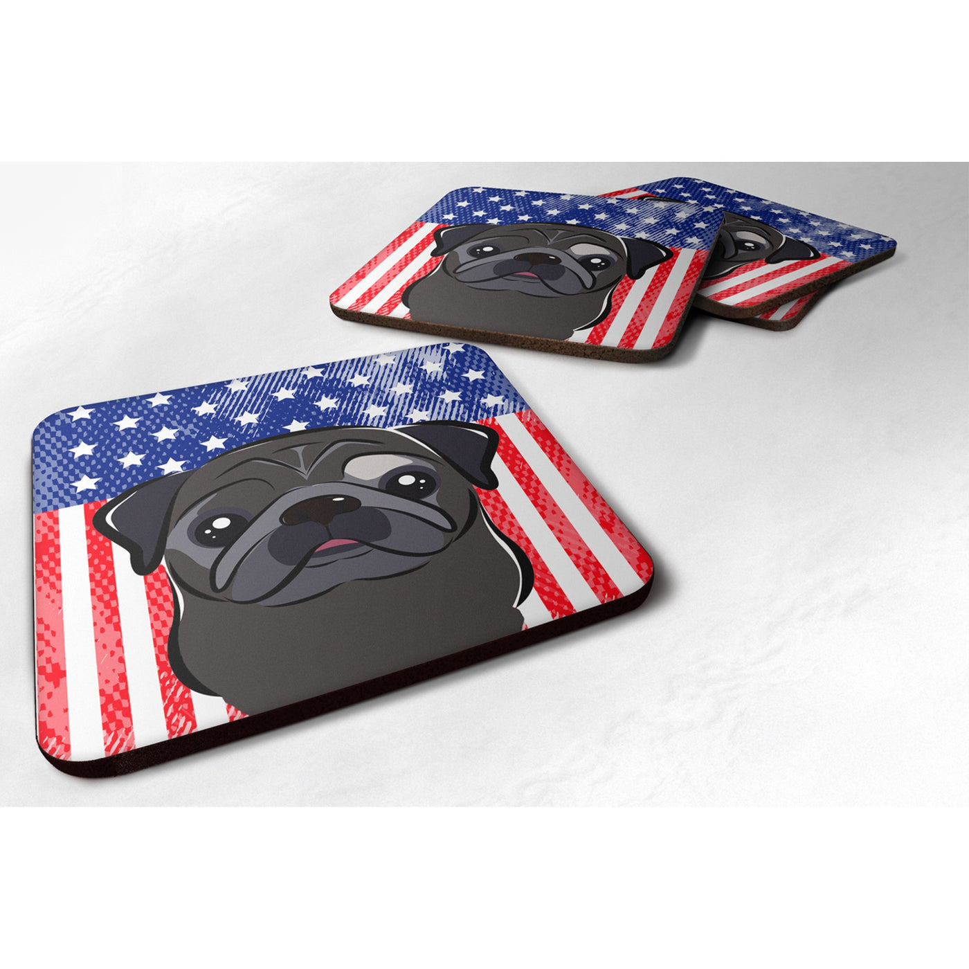 'Caroline's Treasures BB2193FC American Flag And Black Pug Foam Coaster (Set of 4) 3.5'''' Multicolor''