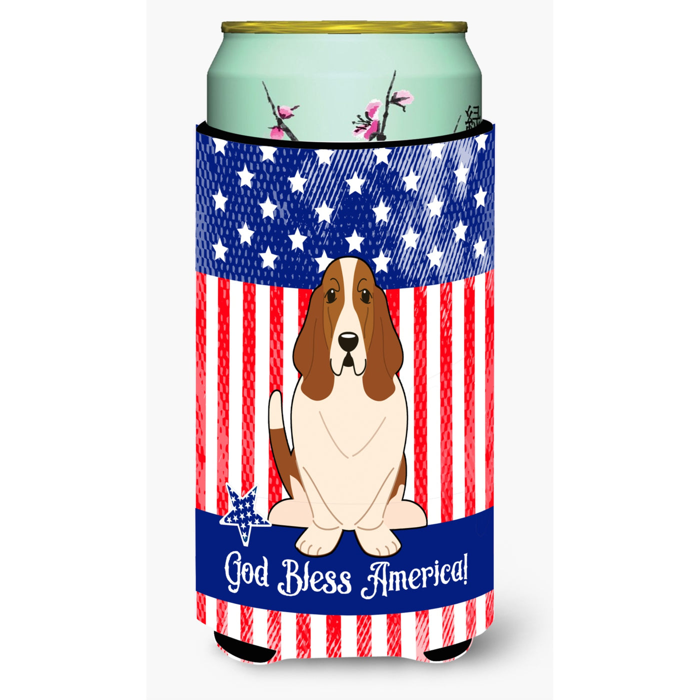 'Caroline's Treasures BB3016TBC Patriotic USA Basset Hound Tall Boy Hugger cold-beverage-koozies Multicolor''