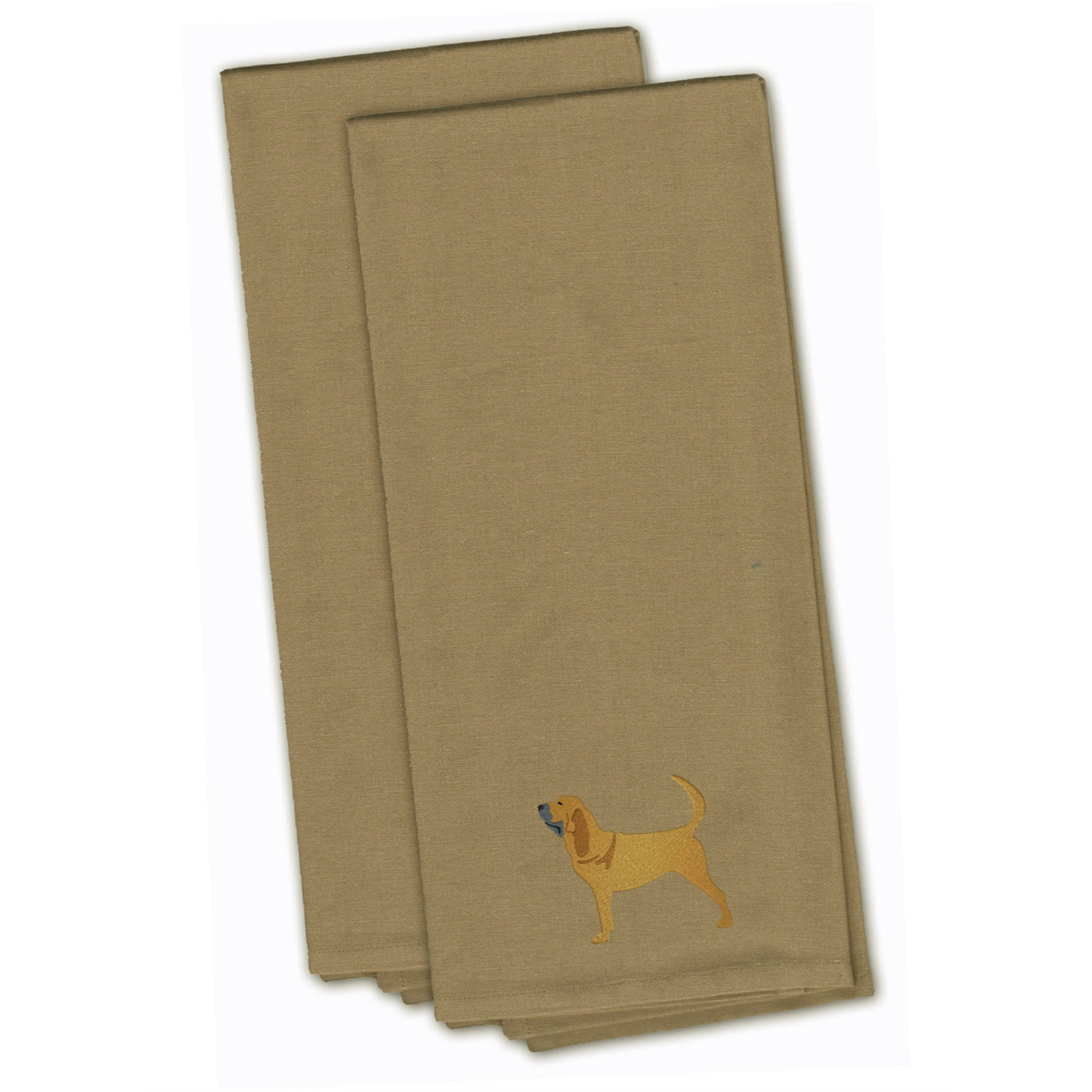 'Caroline's Treasures BB3384TNTWE Bloodhound Tan Embroidered Kitchen Towel (Set of 2) 28'''' x 19'''' Multicolor''