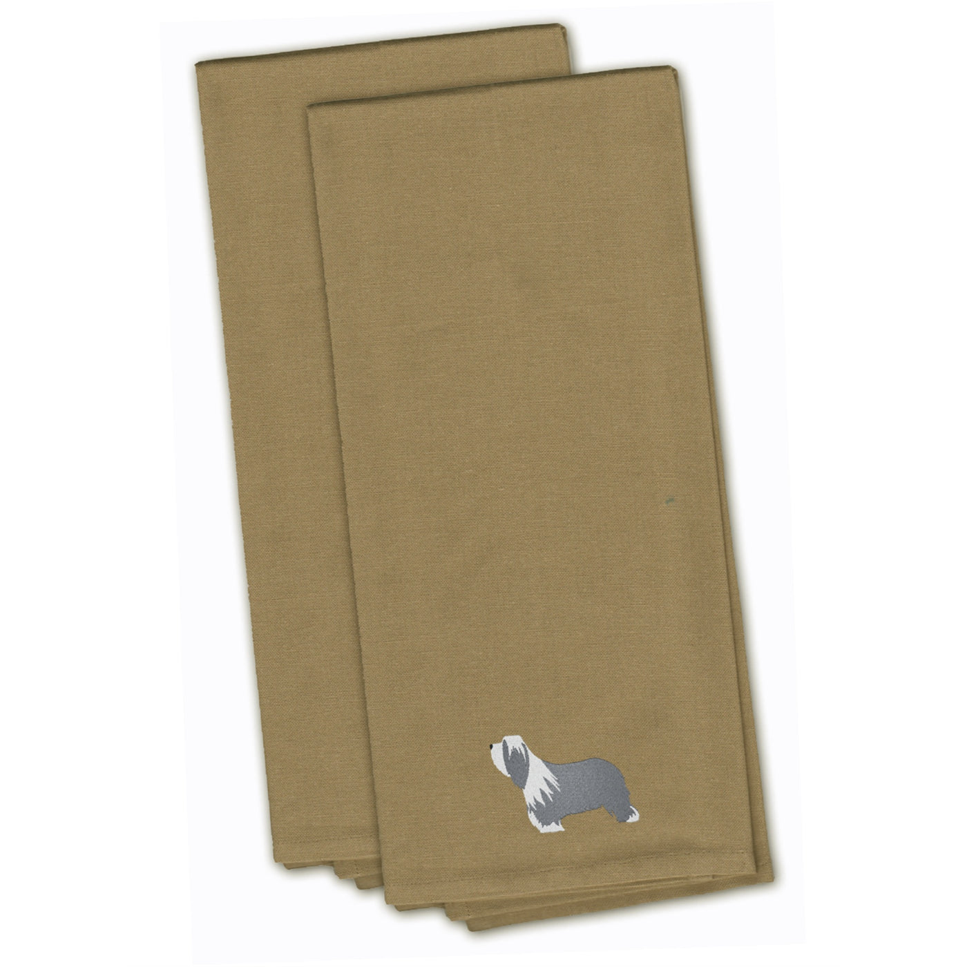 'Caroline's Treasures BB3417TNTWE Bearded Collie Tan Embroidered Kitchen Towel (Set of 2) 28'''' x 19'''' Multicolor''