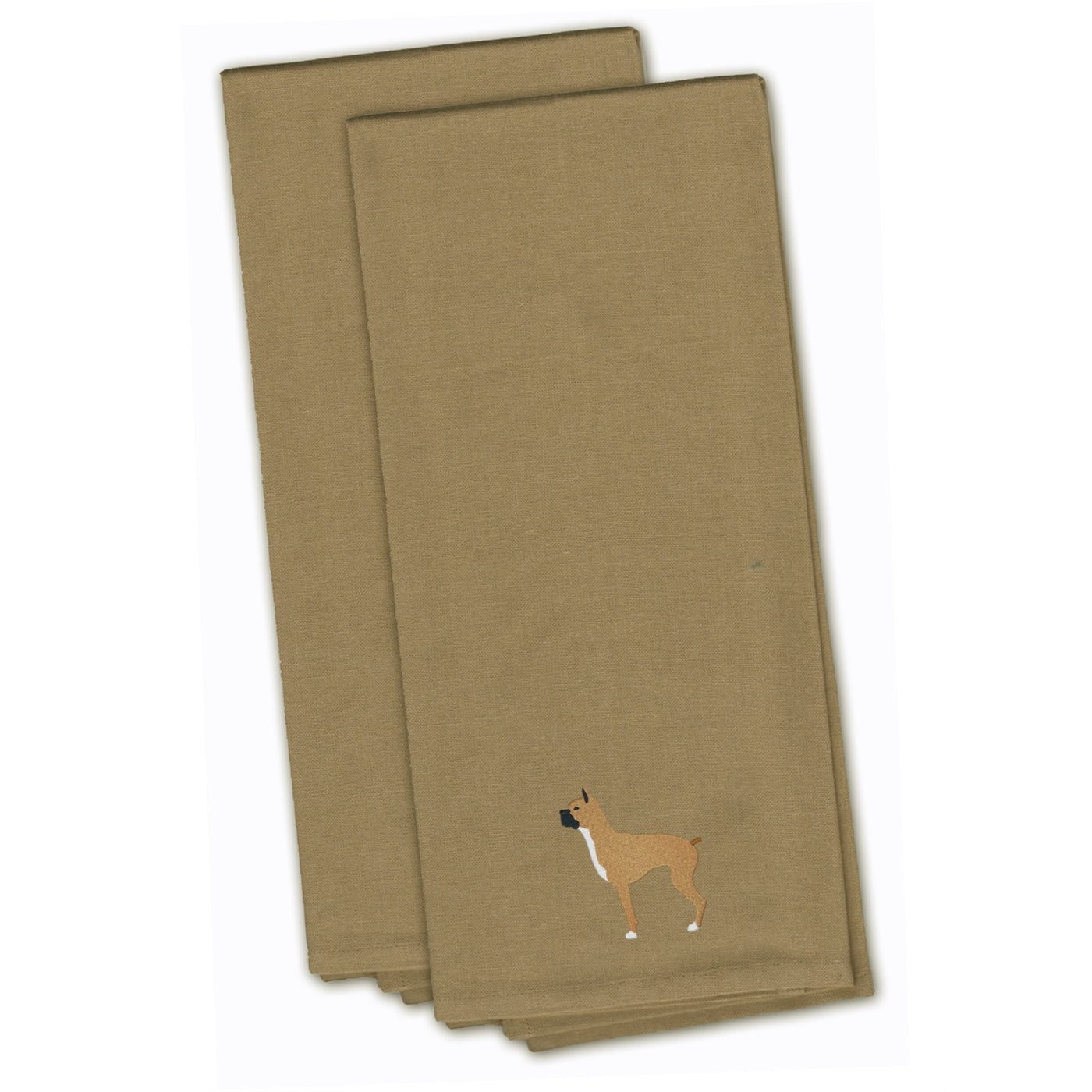'Caroline's Treasures BB3453TNTWE Boxer Tan Embroidered Kitchen Towel (Set of 2) 28'''' x 19'''' Multicolor''