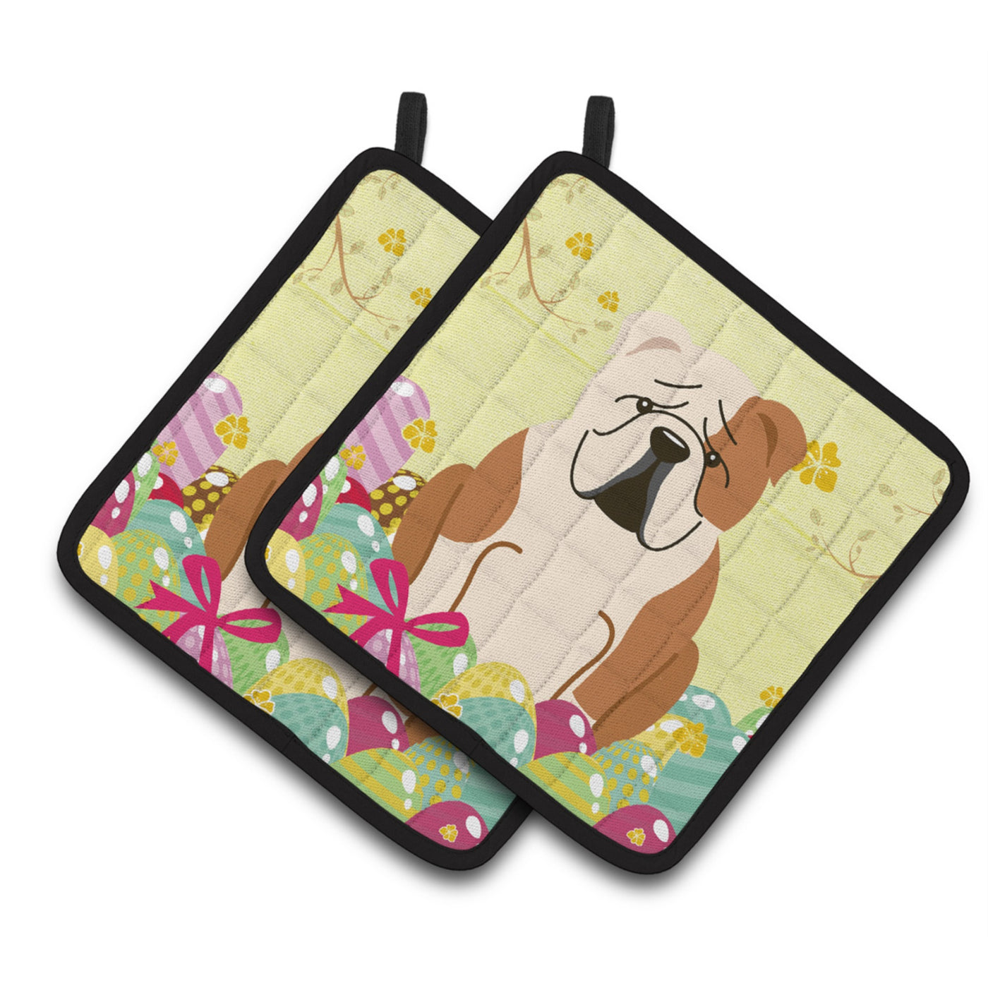 'Caroline's Treasures BB6125PTHD Easter English Bulldog Fawn Pair of Pot Holders 7.5'''' x 7.5'''' Multicolor''