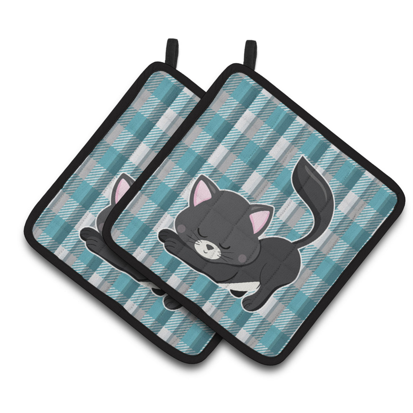 'Caroline's Treasures BB6881PTHD Little Black Cat Kitten Pair of Pot Holders 7.5 x 7.5'''' Multicolor''