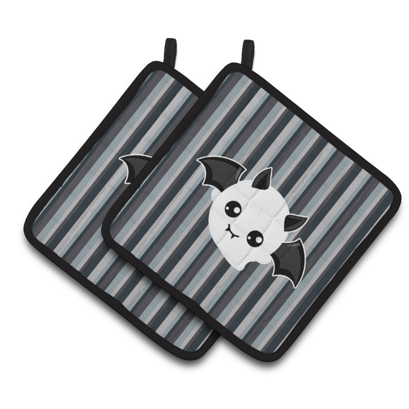 'Caroline's Treasures BB6964PTHD Halloween Ghost Bat Pair of Pot Holders 7.5 x 7.5'''' Multicolor''