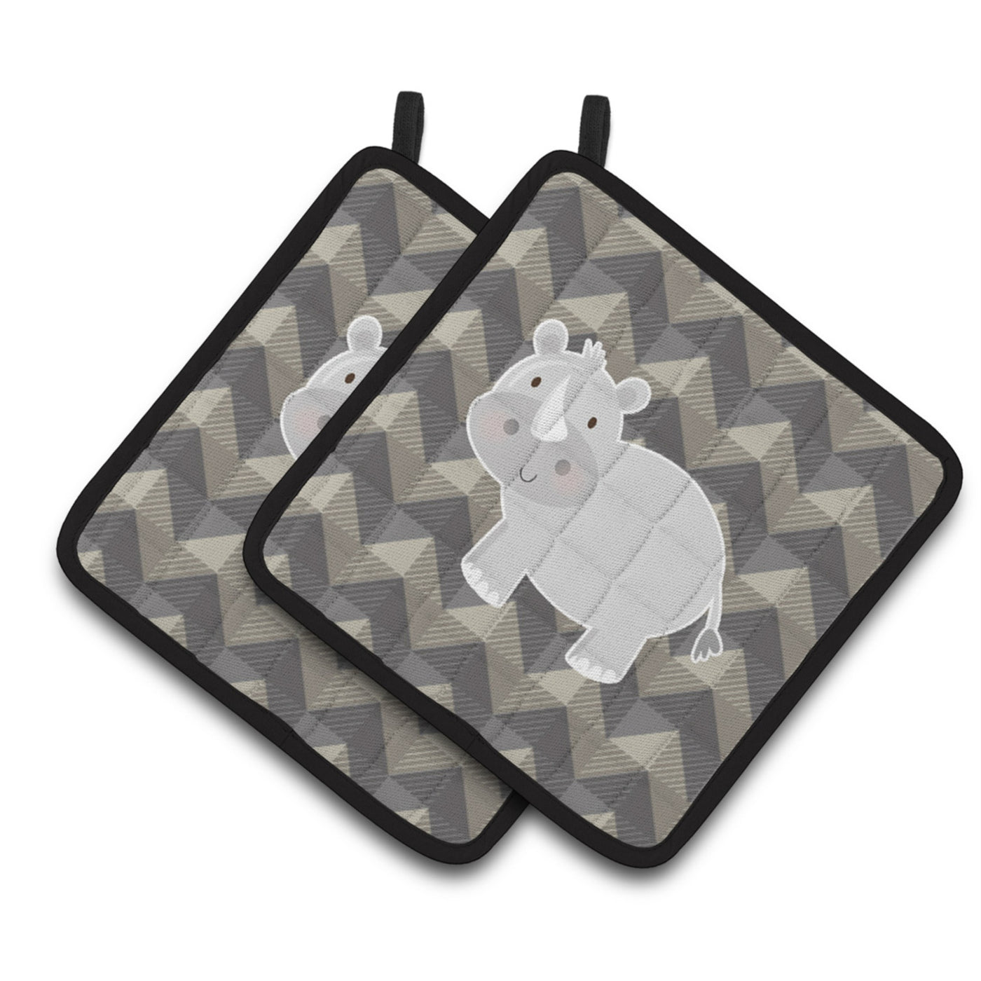 'Caroline's Treasures BB7033PTHD Rhinoceros Pair of Pot Holders 7.5 x 7.5'''' Multicolor''