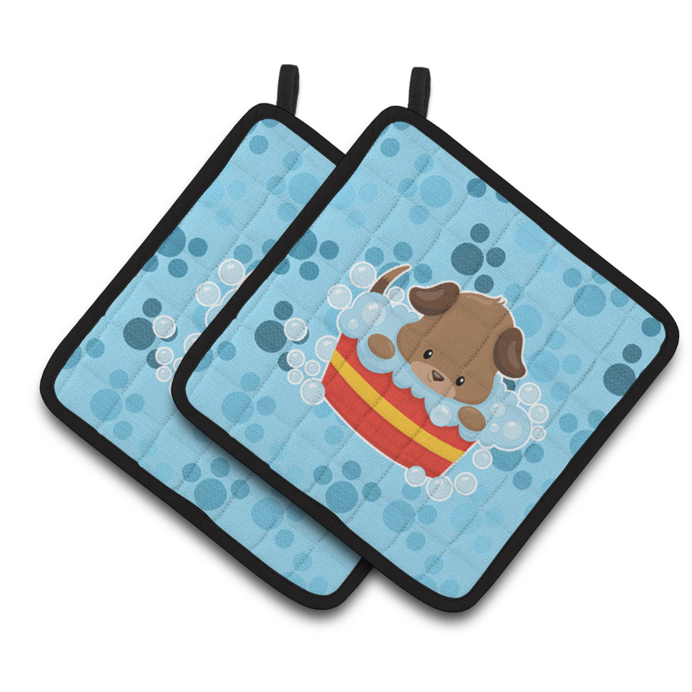 'Caroline's Treasures BB7077PTHD Puppy taking a bath Pair of Pot Holders 7.5 x 7.5'''' Multicolor''