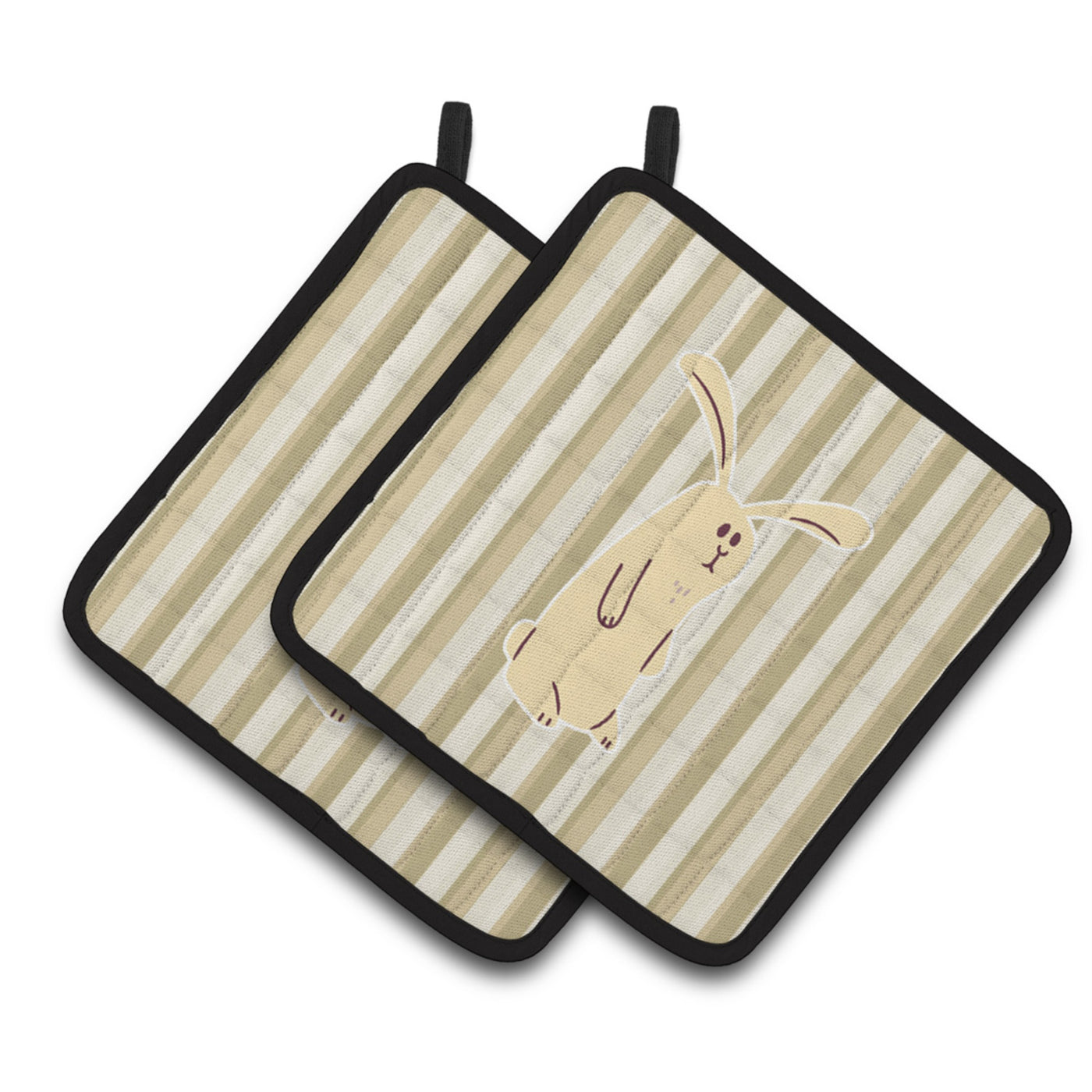 'Caroline's Treasures BB7082PTHD Rabbit on Stripes Pair of Pot Holders 7.5 x 7.5'''' Multicolor''