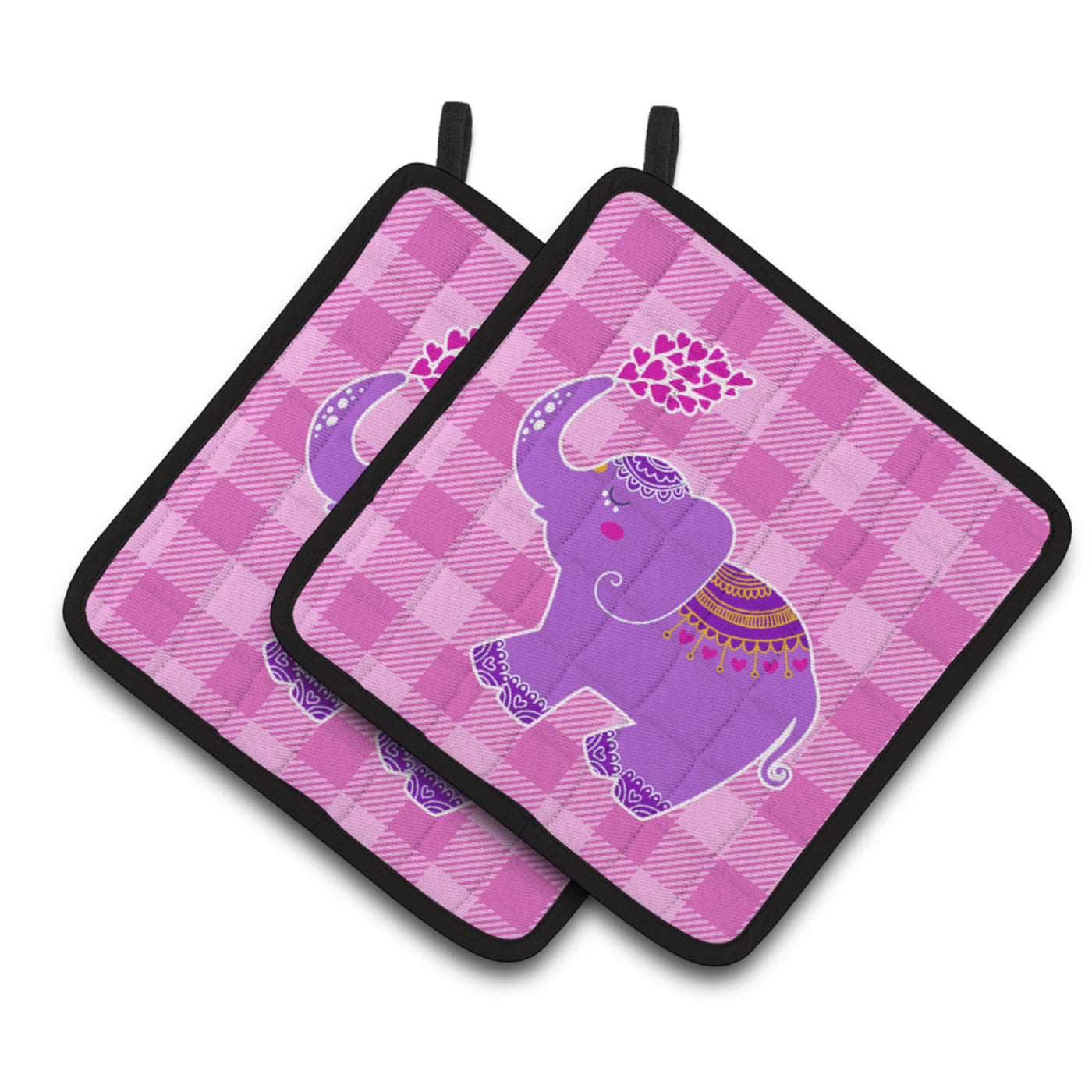 'Caroline's Treasures BB7161PTHD Purple Elephant Pair of Pot Holders 7.5 x 7.5'''' Multicolor''