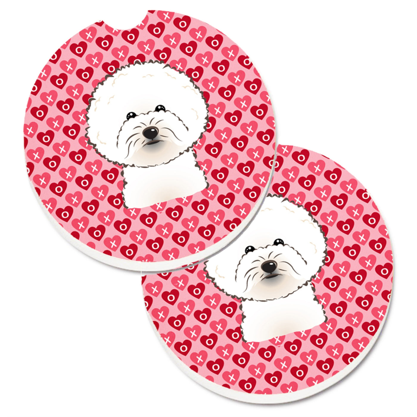 'Caroline's Treasures Bichon Frise Hearts Set of 2 Cup Holder Car Coasters 2.56 Multicolor''