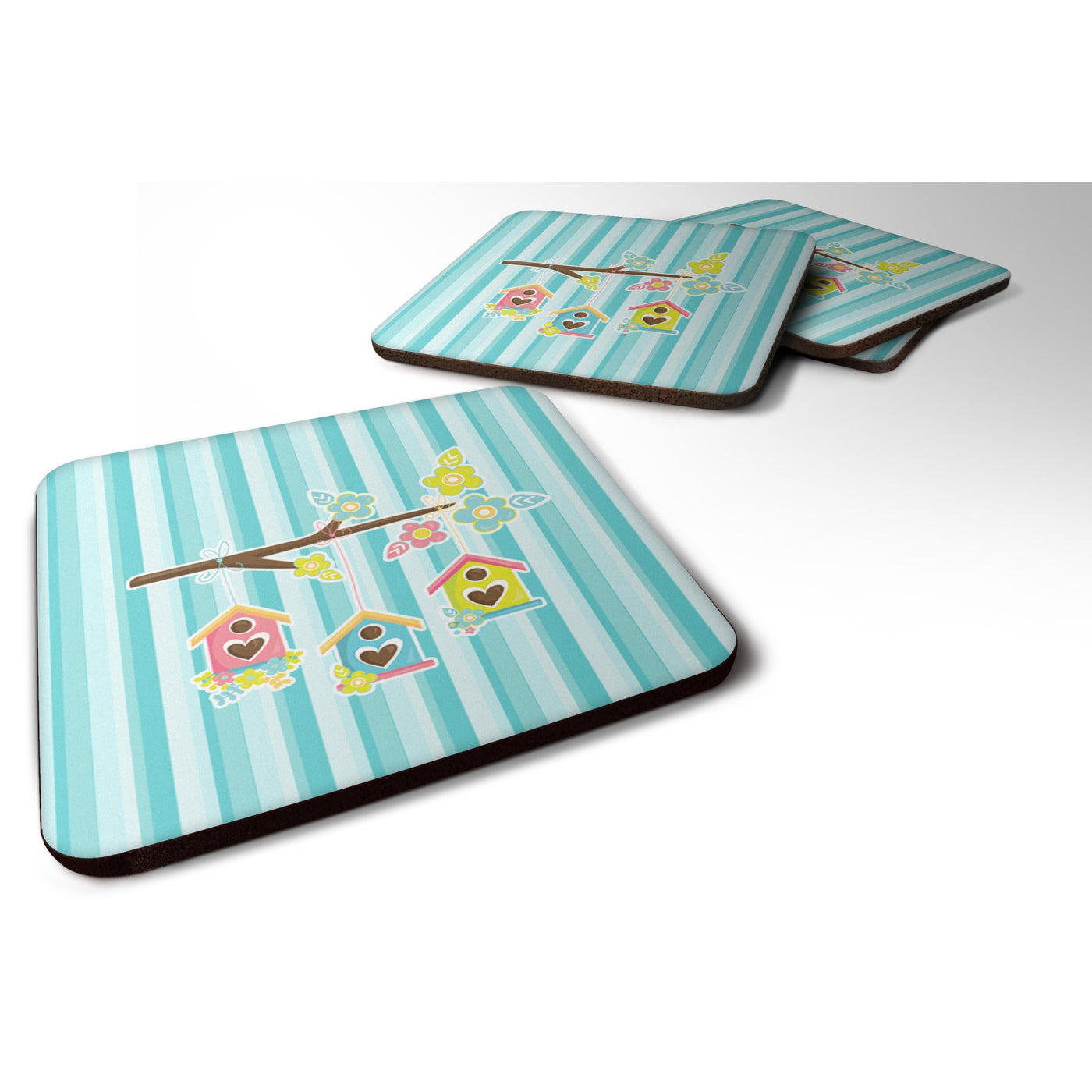 'Caroline's Treasures Birdhouses On Blue Stripes Foam Coaster Set of 4 3.5 Multicolor''