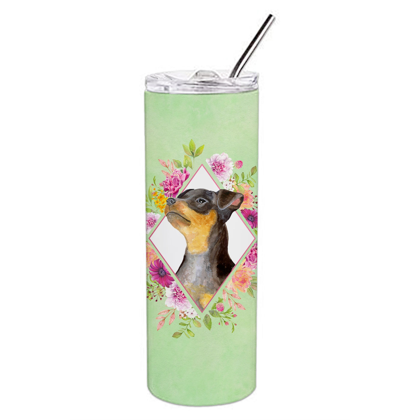 'Caroline's Treasures Black Min Pin Green Flowers Stainless Steel 20 oz Skinny travel-insulated-tumblers Multicolor''