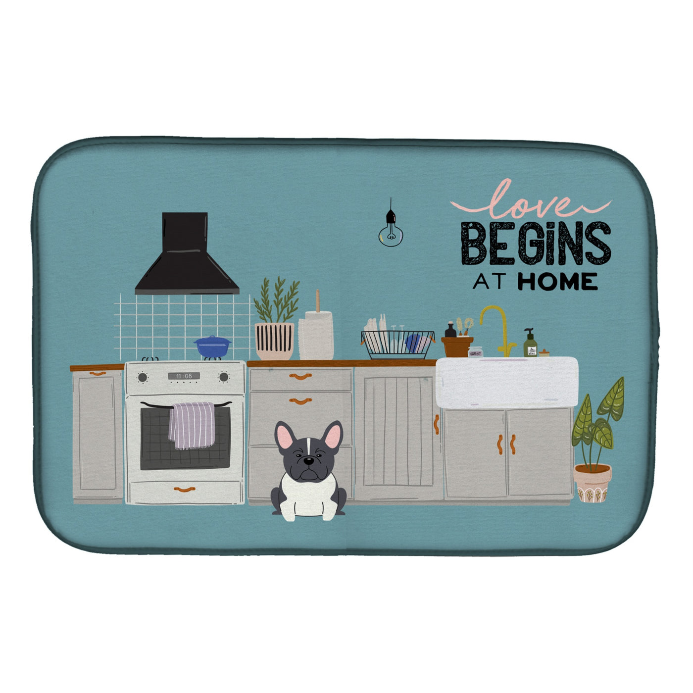 'Caroline's Treasures Black White French Bulldog Kitchen Scene dish-drying-mats 14 x 21 Multicolor''