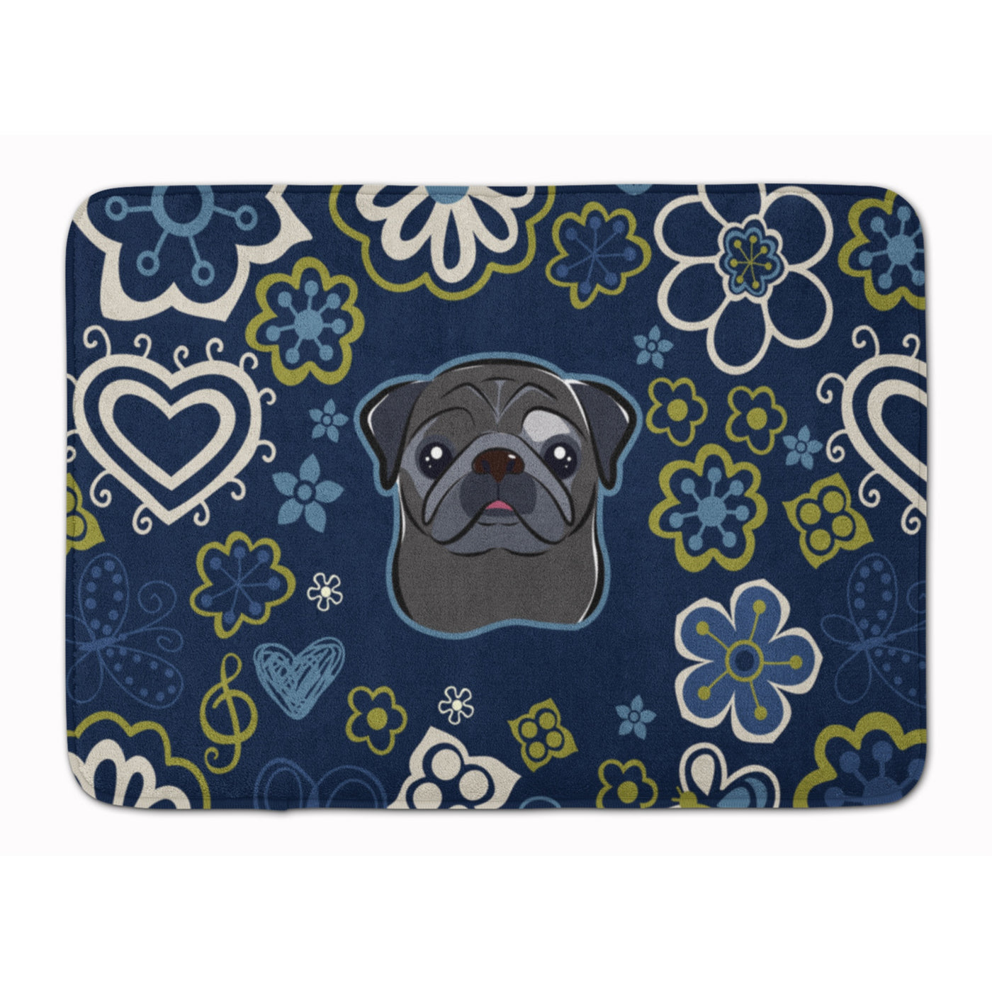'Caroline's Treasures Blue Flowers Black Pug Floor Mat 19'''' x 27'''' Multicolor''