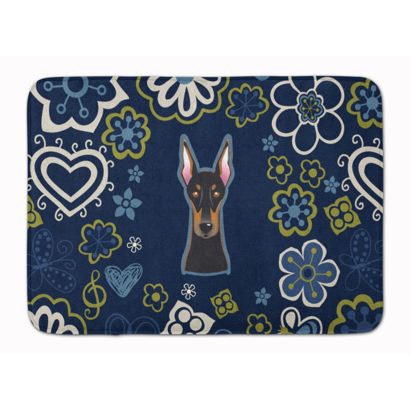 'Caroline's Treasures Blue Flowers Doberman Pinscher Floor Mat 19'''' x 27'''' Multicolor''