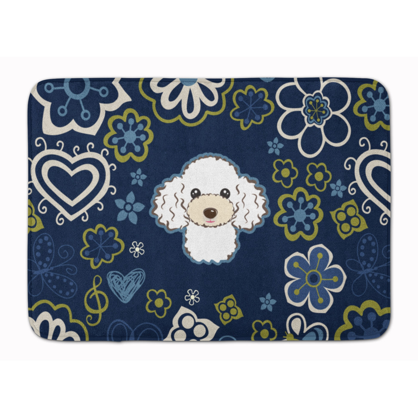 'Caroline's Treasures Blue Flowers White Poodle Floor Mat 19'''' x 27'''' Multicolor''