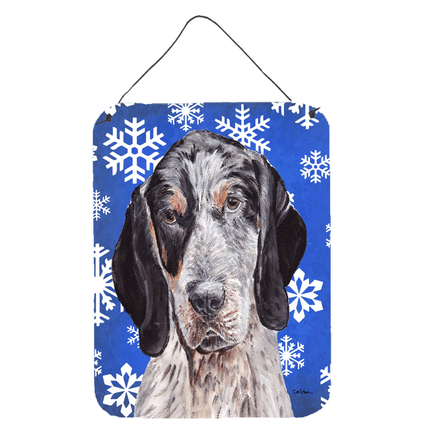 'Caroline's Treasures Blue Tick Coonhound Winter Snowflakes Wall or Door Hanging Prints 16'''' x 12''''''