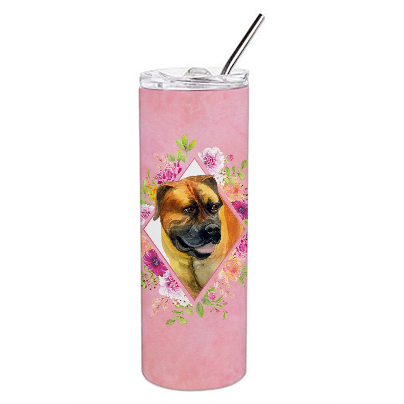 'Caroline's Treasures Borboel Mastiff Pink Flowers Double Walled Stainless Steel 20 oz Skinny travel-insulated-tumblers Multicolor''