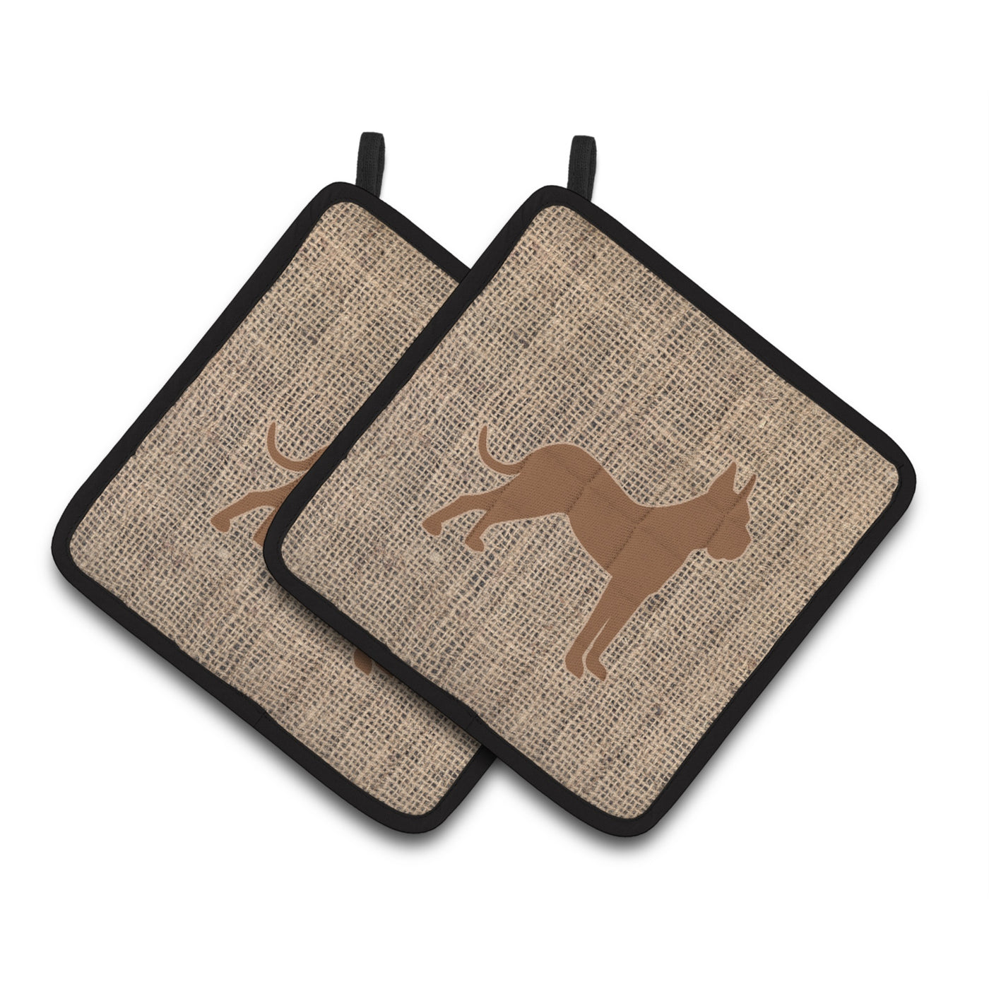 'Caroline's Treasures Boxer Faux Burlap & Brown Pair of Pot Holders BB1109-BL-BN-PTHD 7.5HX7.5W Multicolor''