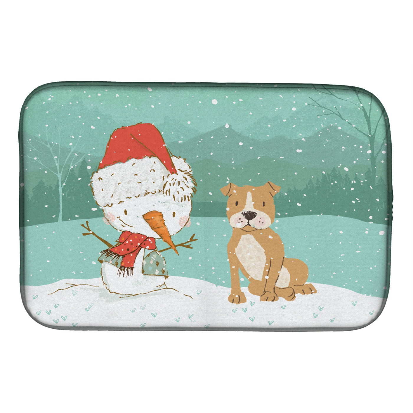 'Caroline's Treasures Brown Staffie Snowman Christmas Dish Drying Mat 14 x 21''