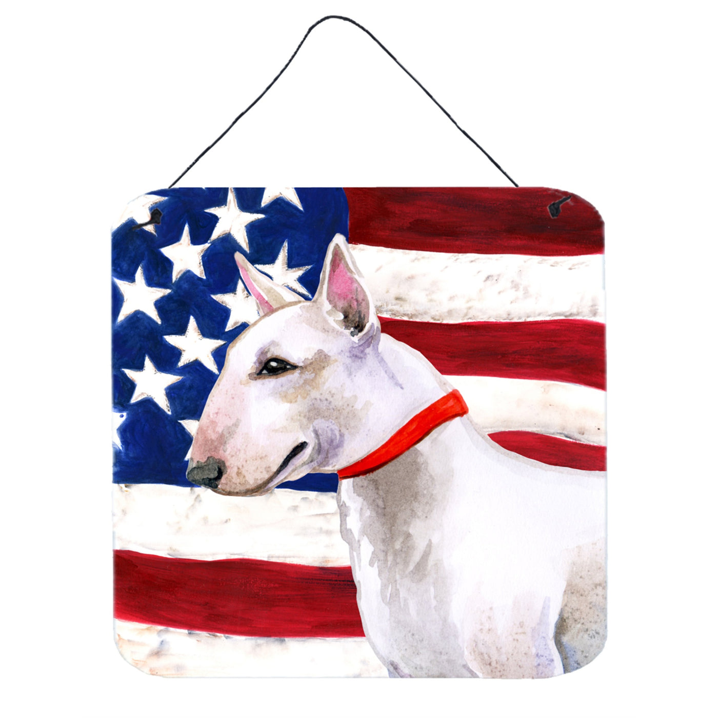 'Caroline's Treasures Bull Terrier Patriotic Metal Print 6h x 6w USA American Flag''