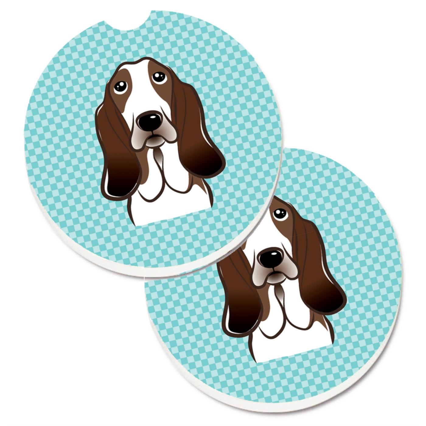 'Caroline's Treasures Checkerboard Blue Basset Hound Set of 2 Cup Holder Car Coasters BB1181CARC 2.56 Multicolor''