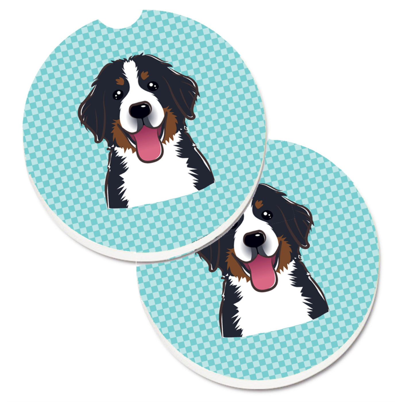 'Caroline's Treasures Checkerboard Blue Bernese Mountain Dog Set of 2 Cup Holder Car Coasters BB1175CARC 2.56 Multicolor''