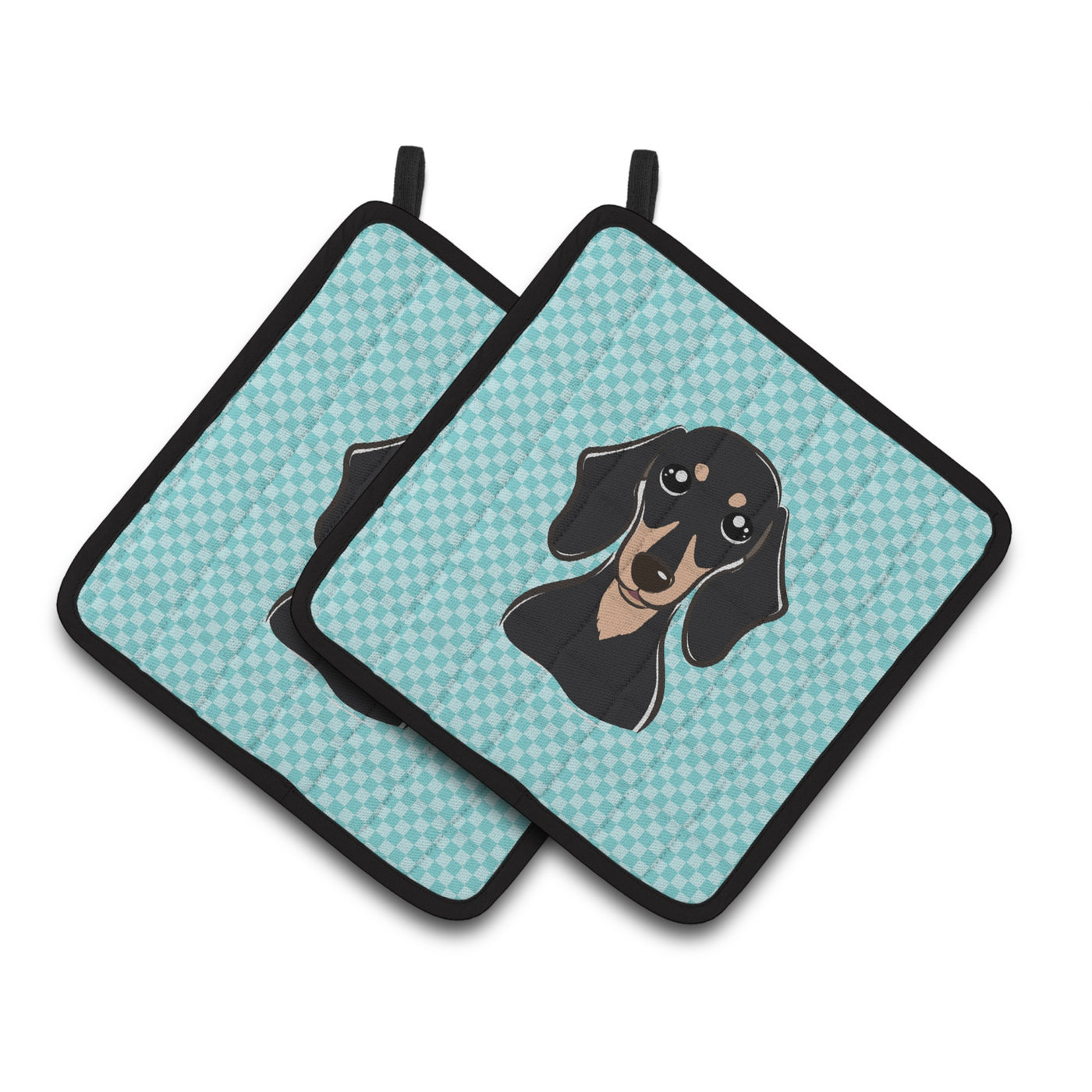 'Caroline's Treasures Checkerboard Blue Smooth black & Tan Dachshund Pair of Pot Holders BB1153PTHD 7.5HX7.5W Multicolor''