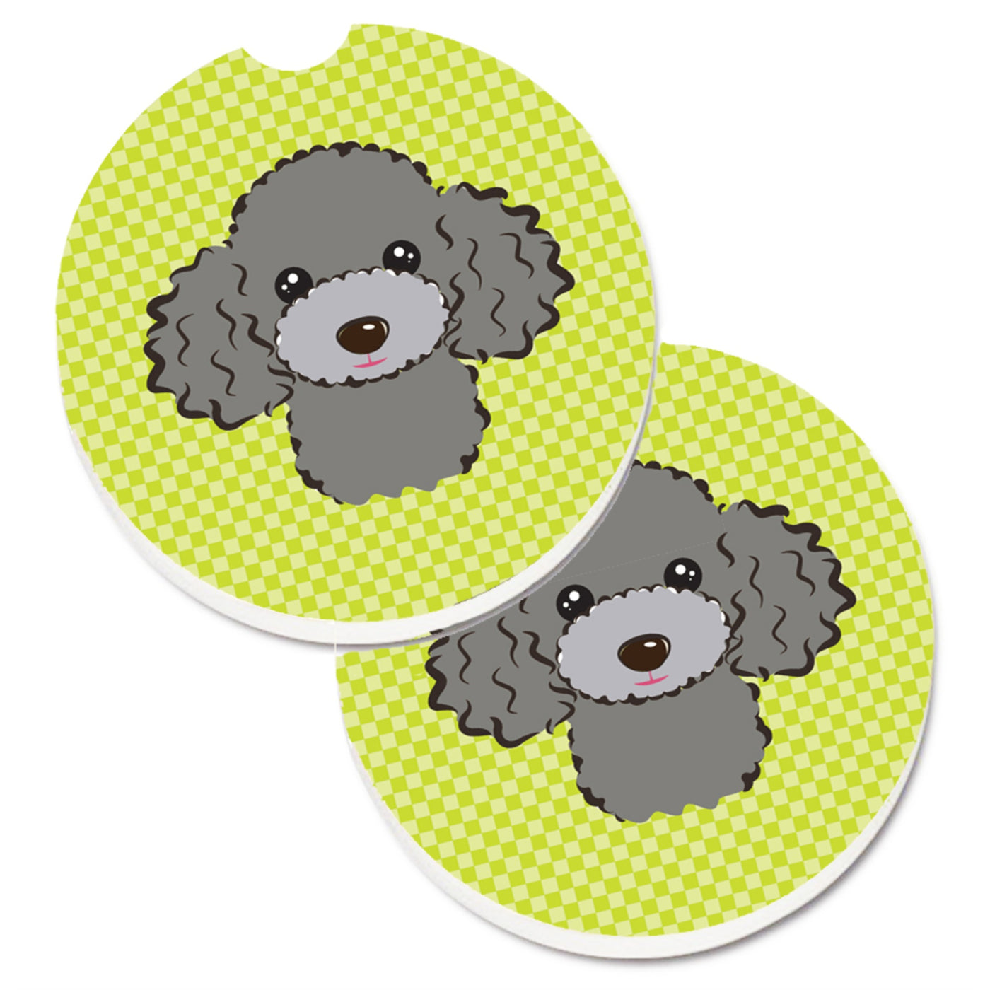 'Caroline's Treasures Checkerboard Lime green Silver Gray Poodle Set of 2 Cup Holder Car Coasters BB1321CARC 2.56 Multicolor''