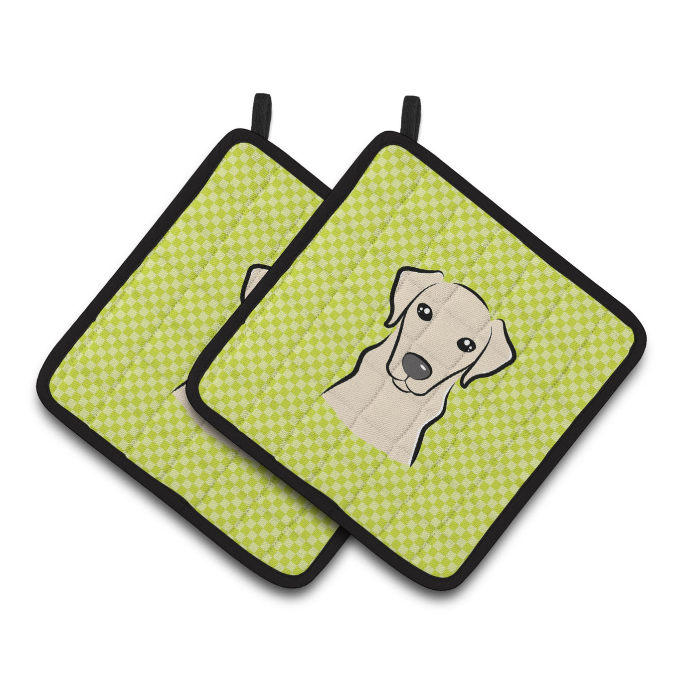'Caroline's Treasures Checkerboard Lime green Yellow Labrador Pair of Pot Holders BB1284PTHD 7.5HX7.5W Multicolor''