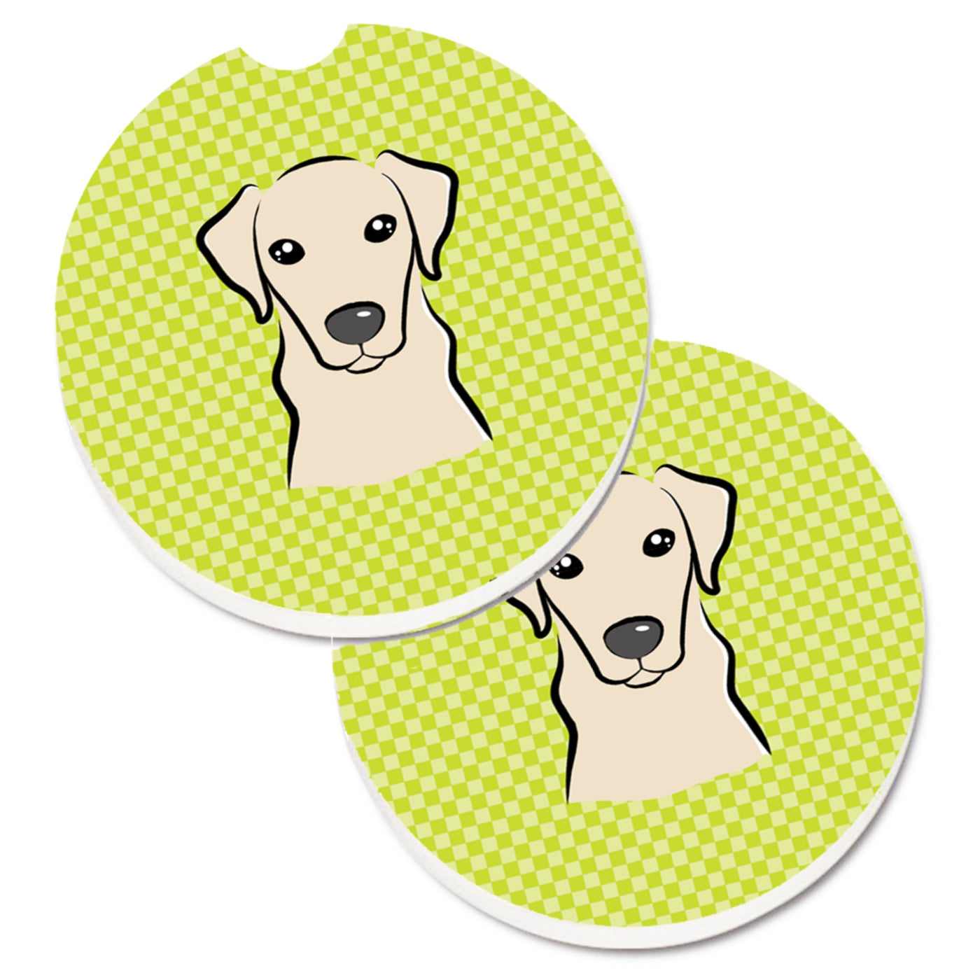 'Caroline's Treasures Checkerboard Lime green Yellow Labrador Set of 2 Cup Holder Car Coasters BB1284CARC 2.56 Multicolor''