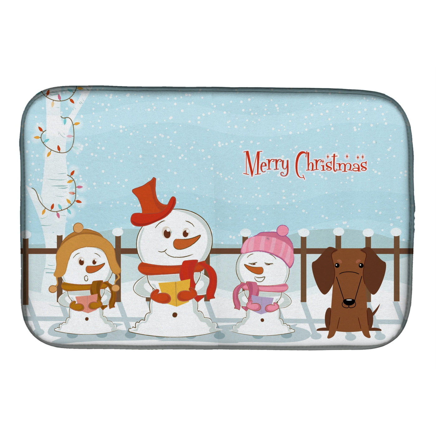 'Caroline's Treasures Merry Christmas Carolers Dachshund Red Brown Dish Drying Mat 14 X 21''