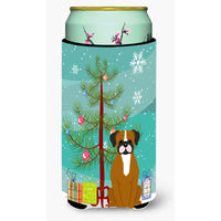 'Caroline's Treasures Merry Christmas Tree Flashy Fawn Boxer Tall Boy Beverage Insulator Hugger BB4241TBC Multicolor''