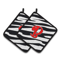 'Caroline's Treasures Monogram Initial B Zebra Red Pair of Pot Holders CJ1024-BPTHD 7.5HX7.5W Multicolor''
