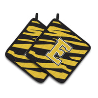 'Caroline's Treasures Monogram Initial E Tiger Stripe - black Gold Pair of Pot Holders CJ1026-EPTHD 7.5HX7.5W Multicolor''