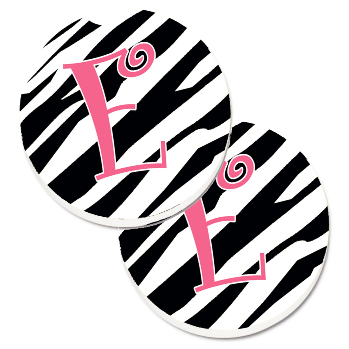 'Caroline's Treasures Monogram Initial E Zebra Stripe & Pink Set of 2 Cup Holder Car Coasters CJ1037-ECARC 2.56 Multicolor''