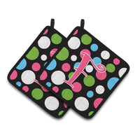 'Caroline's Treasures Monogram Initial F Polkadots & Pink Pair of Pot Holders CJ1038-FPTHD 7.5HX7.5W Multicolor''