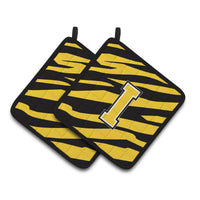 'Caroline's Treasures Monogram Initial I Tiger Stripe - black Gold Pair of Pot Holders CJ1026-IPTHD 7.5HX7.5W Multicolor''