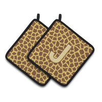 'Caroline's Treasures Monogram Initial J Giraffe Pair of Pot Holders CJ1025-JPTHD 7.5HX7.5W Multicolor''