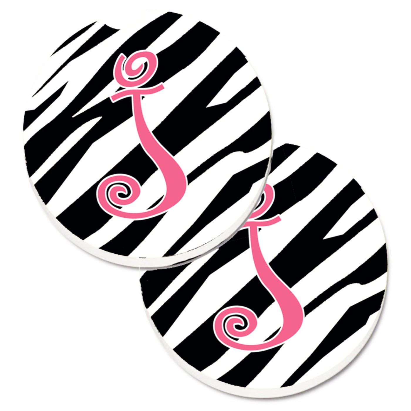 'Caroline's Treasures Monogram Initial J Zebra Stripe & Pink Set of 2 Cup Holder Car Coasters CJ1037-JCARC 2.56 Multicolor''
