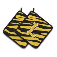 'Caroline's Treasures Monogram Initial L Tiger Stripe - black Gold Pair of Pot Holders CJ1026-LPTHD 7.5HX7.5W Multicolor''