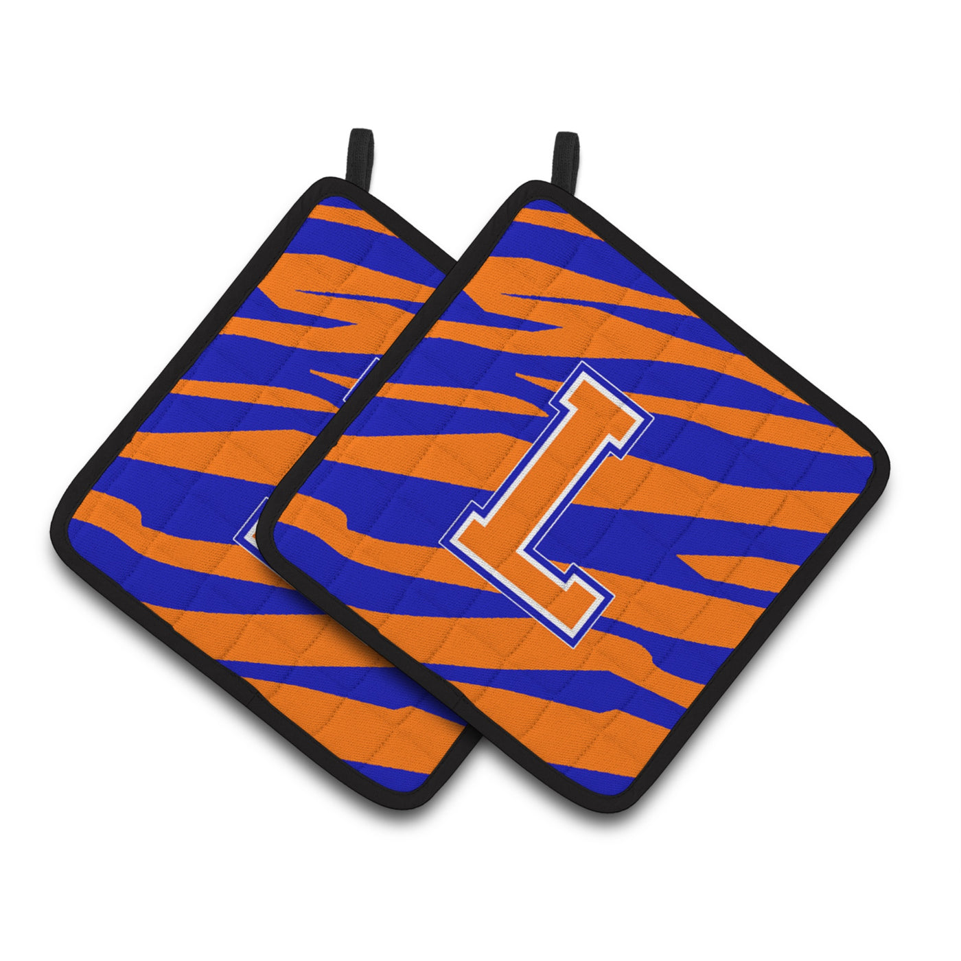 'Caroline's Treasures Monogram Initial L Tiger Stripe - Blue Orange Pair of Pot Holders CJ1023-LPTHD 7.5HX7.5W Multicolor''