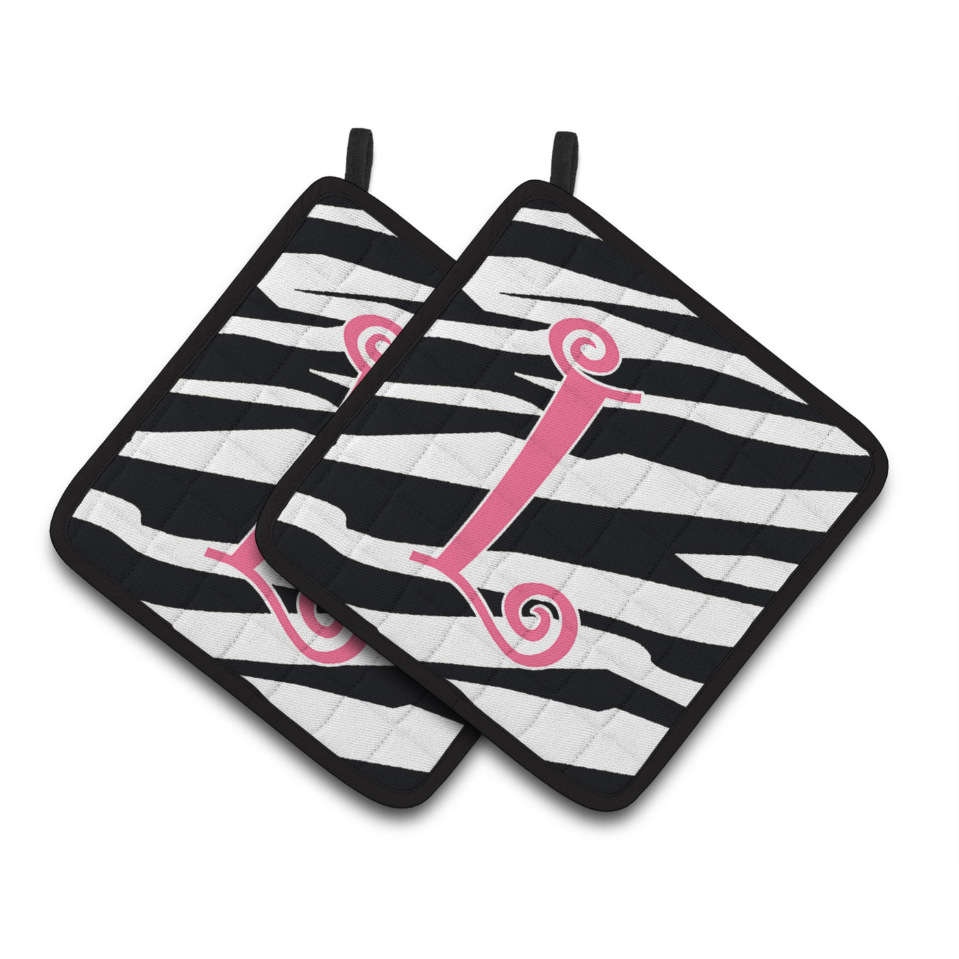 Model No : Cj1037-Lpthd''Caroline'S Treasures Monogram Initial L Zebra Stripe & Pink Pair Of Pot Holders Cj1037-Lpthd 7.5Hx7.5W Multicolor''Brand : Caroline'S Treasuresbrand : Caroline'S Treasures
