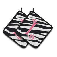 'Caroline's Treasures Monogram Initial L Zebra Stripe & Pink Pair of Pot Holders CJ1037-LPTHD 7.5HX7.5W Multicolor''