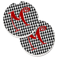 'Caroline's Treasures Monogram Initial M Houndstooth black Set of 2 Cup Holder Car Coasters CJ1035-MCARC 2.56 Multicolor''