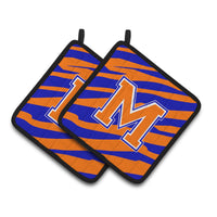 'Caroline's Treasures Monogram Initial M Tiger Stripe - Blue Orange Pair of Pot Holders CJ1023-MPTHD 7.5HX7.5W Multicolor''