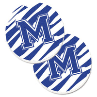 'Caroline's Treasures Monogram Initial M Tiger Stripe Blue & White Set of 2 Cup Holder Car Coasters CJ1034-MCARC 2.56 Multicolor''