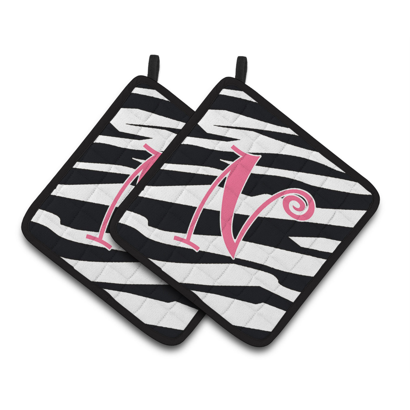 'Caroline's Treasures Monogram Initial N Zebra Stripe & Pink Pair of Pot Holders CJ1037-NPTHD 7.5HX7.5W Multicolor''
