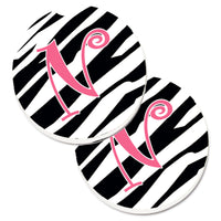 'Caroline's Treasures Monogram Initial N Zebra Stripe & Pink Set of 2 Cup Holder Car Coasters CJ1037-NCARC 2.56 Multicolor''